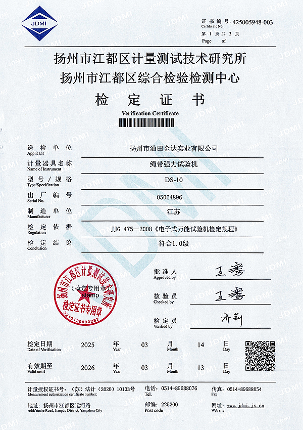 绳带强力试验机检定证书